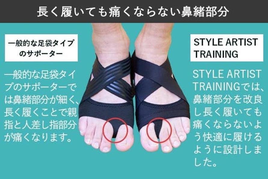 立体縫製が特長的な「STYLE ARTIST TRAINING」は、足裏に密着して3点アーチをサポート。良い姿勢が意識できて、立つ・歩くがスムーズになるといいます。